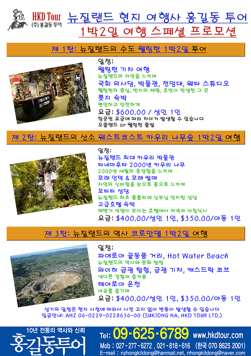 ♥ 홍길동 투어 7월 스페셜 프로모션 ♥ 뉴질랜드 현지 여행사 ☆ 홍길동 투어 ♥