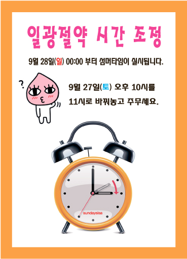 9월 28일(일) 00:00 부터 섬머타임이 실시됩니다.