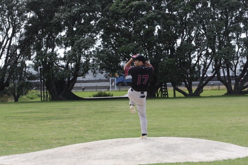 (노스쇼어프리미어팀의 선발 투수 타카의 역동적인 투구 모습)