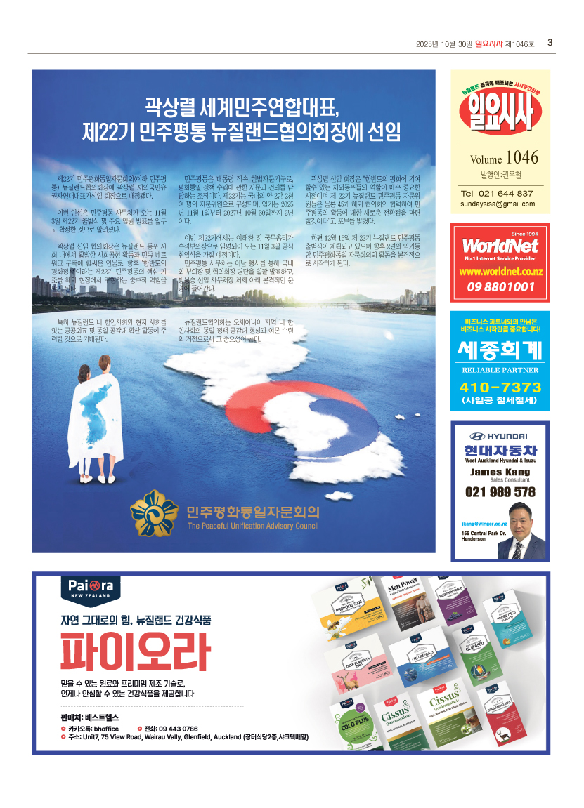 제22기 민주평화통일자문회의(이하 민주평통) 뉴질랜드협의회장에 곽상렬 재외국민유권자연대대표가신임 회장으로 내정됐다.