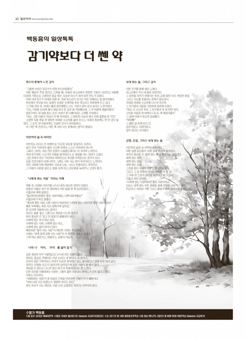 백동흠의 일상톡톡; 감기약보다 더 쎈 약
