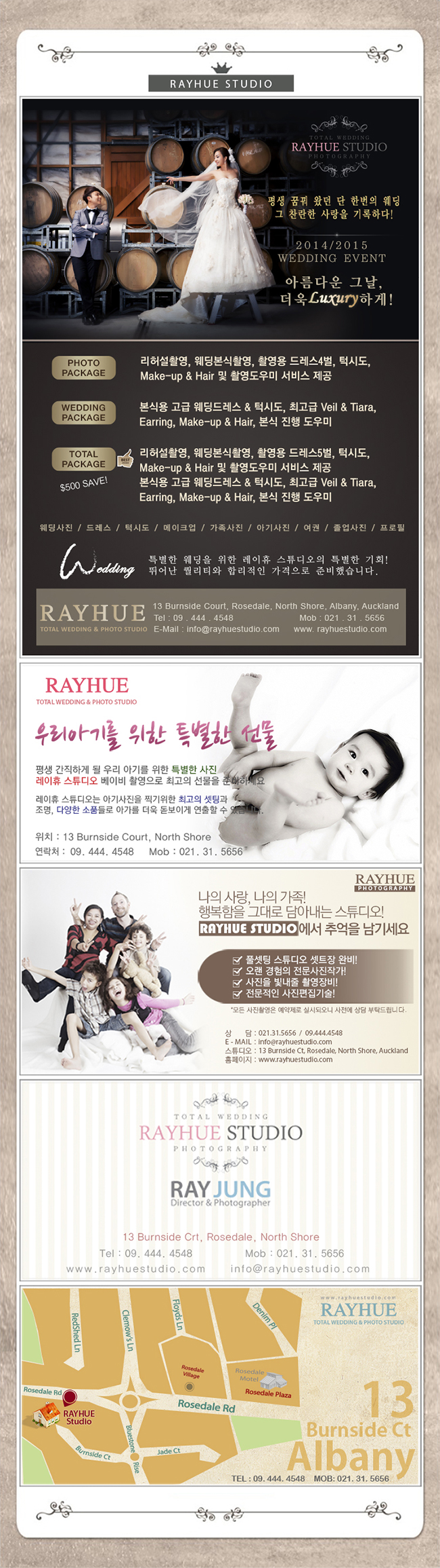 [레이휴 스튜디오] 패키지웨딩의 모든것! Ray 알림마당 0 3348 2014.10.31 12:02 http://www.rayhuestudio.com + 233 http://www.rayhuestudio.com패키지 웨딩의 모든것! 결혼 준비는 레이휴 스튜디오와 함께 하세요~패키지웨딩/스튜디오/드레스/메이크업/가족사진/돌/백일/생일파티/부동산/졸업사진/프로필/여권