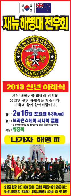 재뉴 대한민국 해병대 전우회 2013년 신년 하례식 을 갖습니다. 가족과 함께 참여바랍니다.