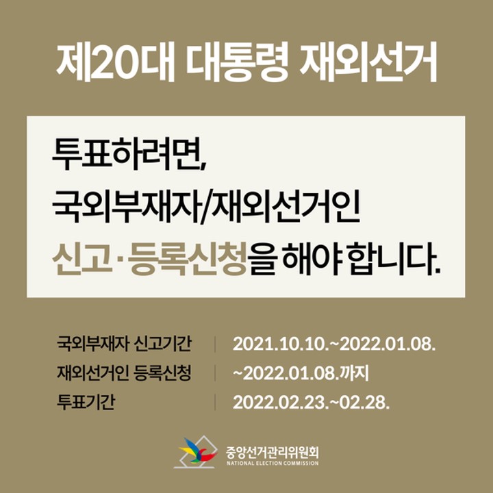 - 재외선거인 : 중앙선관위 홈페이지(ova.nec.go.kr)