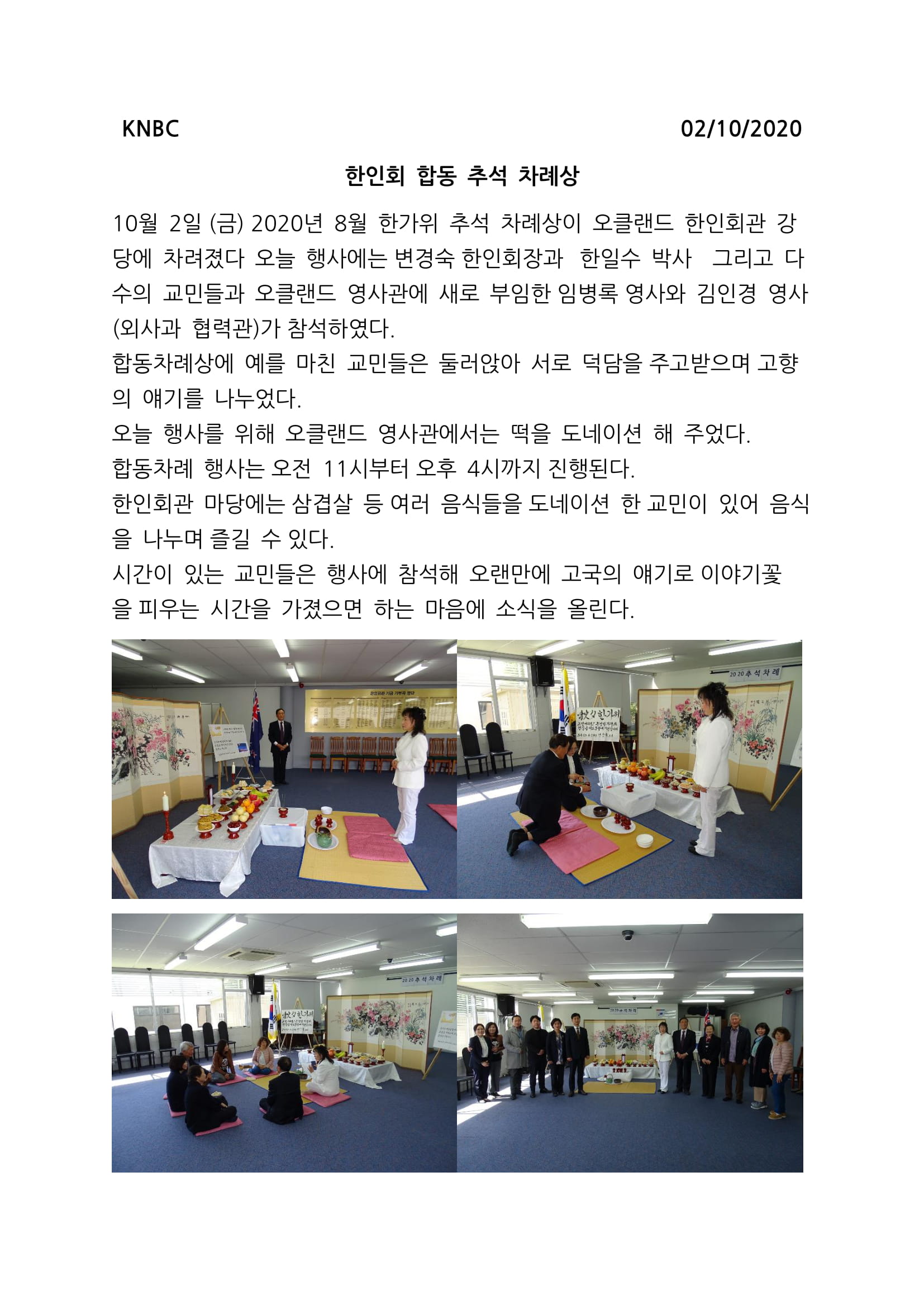 [오클랜드 한인회] 10월 2일 추석 차례상 행사