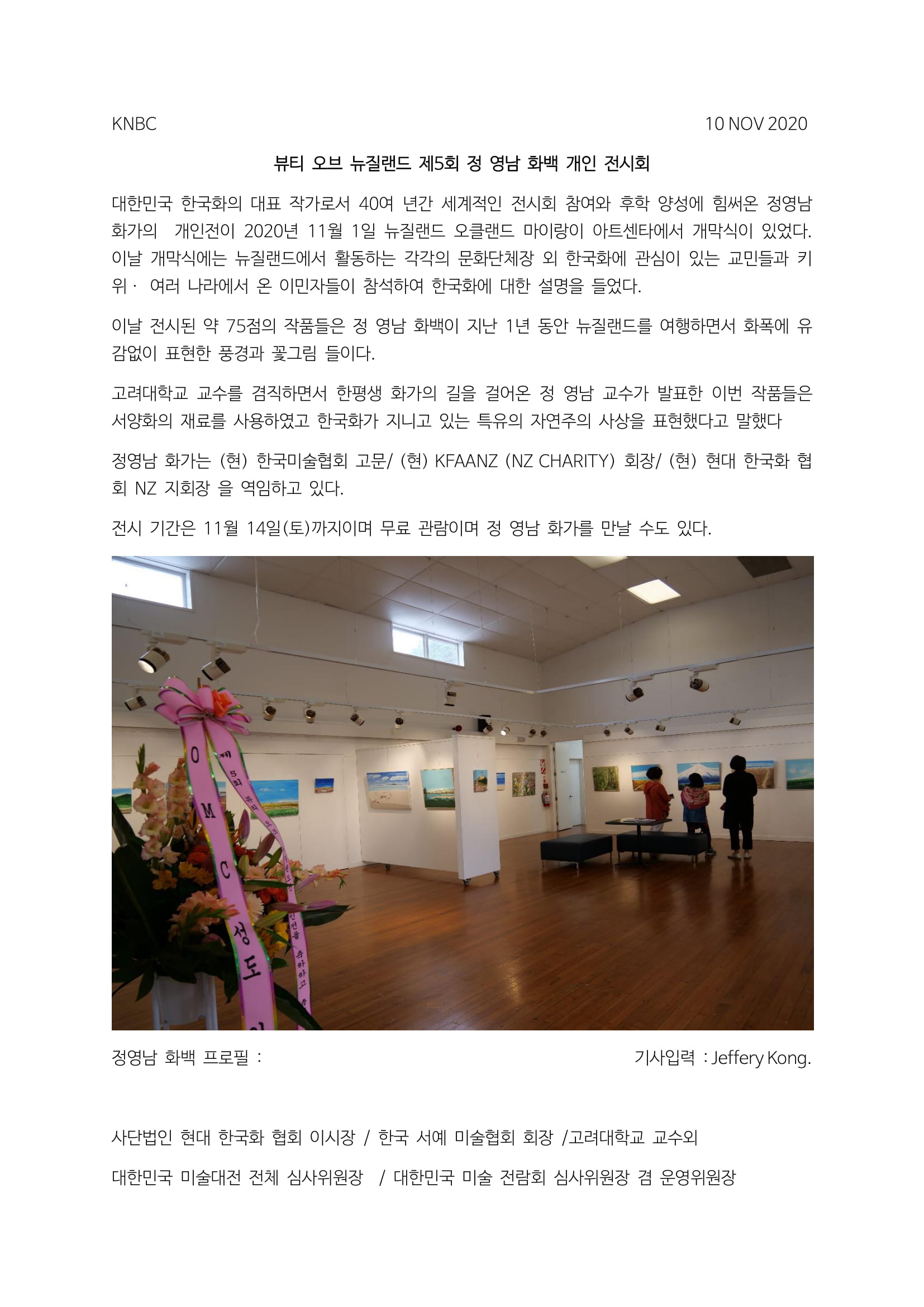 뷰티 오브 뉴질랜드 정영남 화백 개인전
