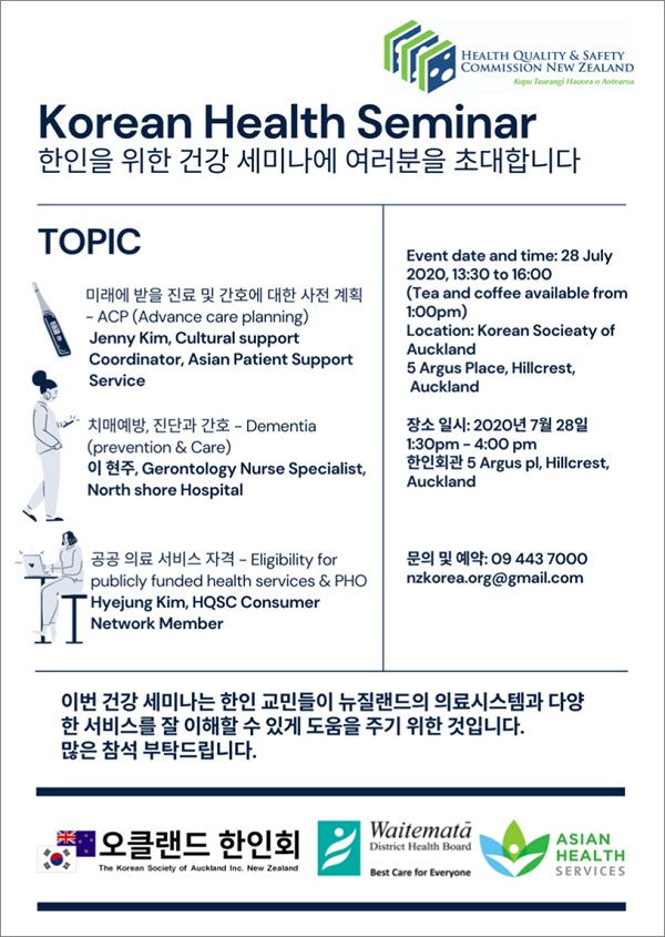 7월 28일 한인들을 위한 건강 세미나가 있습니다. 일요시사 알림마당 0 1900 2020.07.11 10:35 한인들을 위한 건강세미나( 7월 28일 화요일,오후 1시 30분~4시, 한인회관 )에 많은 참석 바랍니다.