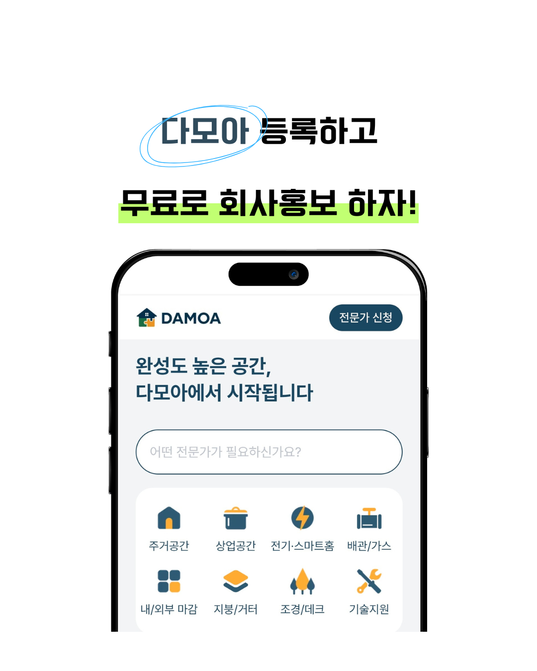 한인 시공업체를 연결해주는, 다모아 무료 플랫폼 안내